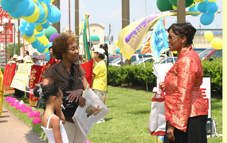 【明慧网二零零七年五月十四日】(明慧记者舒静休士顿报导)法轮大法弟子怀着喜悦的心情,迎来了李洪志大师华诞五十六周年暨传法十五周年,迎来了世界法轮大法日八周年,欢庆的节日,意义非凡。法轮大法洪传十五载,大法的法理“真、善、忍”使上亿修炼者身心受益,走向返本归真之路,也给上亿修炼者的家庭、有缘人以及社会带来祥和、美好,道德回升。面对中共的残酷迫害,大法弟子始终和平理性、慈悲大忍、无私无我、持之以恒的向民众讲真相。重德修善,使民众从中共的谎言中觉醒过来,他们从不了解、误解到见证、了解和支持法轮功,越来越多的人们认识到大法的真正内涵。世界法轮大法日,也越来越成为人们关注的日子。  庆祝世界法轮大法日,休士顿中国城独特风光 |