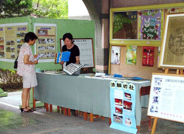 宜兰高商法轮功社团在校庆活动中摆设展位,介绍法轮功真相 |