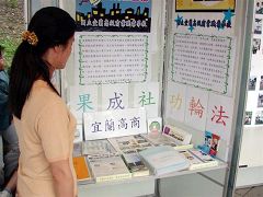 宜兰高商刘姓教师表示,该校二零零三年二月成立法轮功社团,经常在学校的迎新活动、校庆或社团博览会时,向学校师生洪法,介绍法轮大法的祥和美好与中共迫害法轮功的真相。  二零零四年参加社团博览会 |
