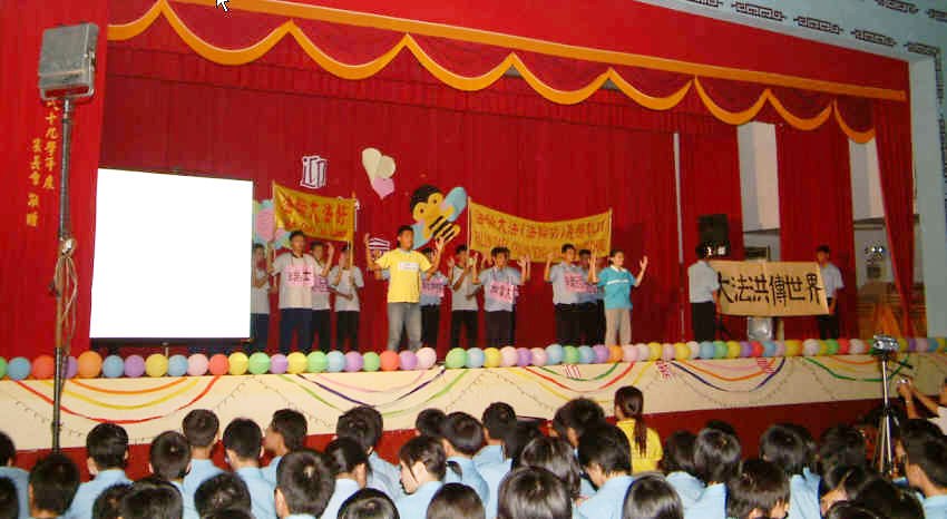 二零零五年九月社团迎新,法轮功社团表演舞台话剧 |
