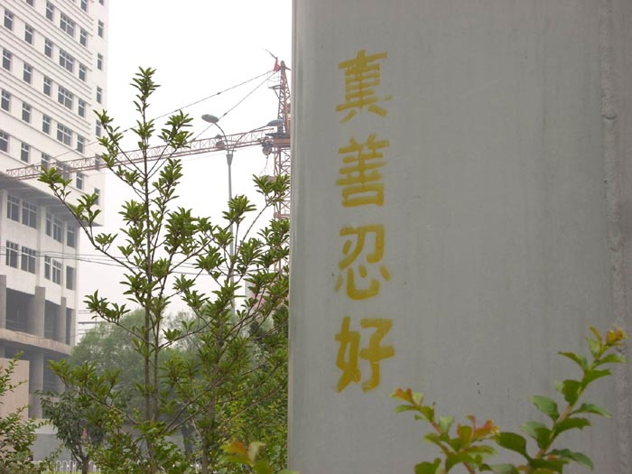 这是大陆某地的真相标语,已保持了3年之久,现在只是颜色褪了一点。