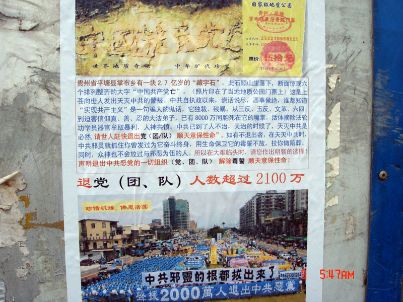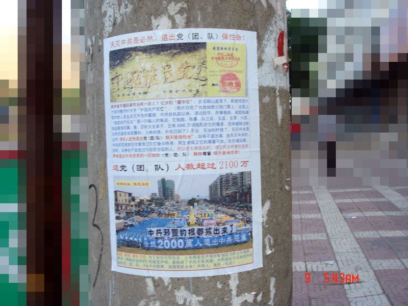 山东省即墨市某地的退党宣传画和标语,于二零零七年六月九日清晨拍摄。 |