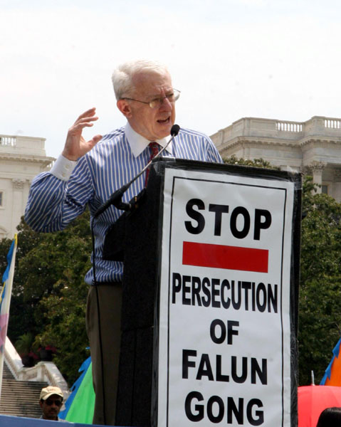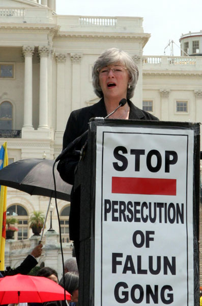 * 法轮功靠真善忍和平理念走过八年迫害 法轮功发言人张而平在接受采访时说:“在过去的八年里,我们看到,法轮功靠的是一个真善忍的和平理念,而不是靠政治手段或是任何暴力手段。我们是靠非暴力形式,靠民间自愿形式传播信息。” 他说,这种迫害本身给很多法轮功学员和他们的家庭造成了巨大的灾难,最近加拿大独立调查团有关摘取法轮功学员器官的报告进一步证实了中共迫害法轮功是不择手段的。这样一种迫害在历史上看是前所未有的。但同时也使法轮功走向世界,不光很多大陆的中国人对法轮功已经有所了解,在国际上更多的人对法轮功的理念和和平抗争也有了认同。 此活动组织者之一葛敏表示,九九年迫害刚开始时,中共的邪恶是铺天盖地而来,很多人在看法轮功能撑多久;八年里,法轮功学员面对残暴,始终坚持和平理性反迫害,如今越来越多人了解法轮功,看清中共邪恶本质。很多人,包括中国大陆的人都看到了,中共就象一个烂苹果,全腐烂了,人们都在想中共能“撑”多久。 * 裴恩议员:支持中国人民解体中共的选择 新泽西州国会众议员唐纳德•裴恩(Donald M. Payne)说:“所有人都有信仰自由的权利,如果中国人选择了解体中共,这是中国自己的选择,我支持他们的选择。” 他并说:“今年参加(集会)的议员更多,把我们的信息传递出去,中共非法迫害法轮功,任何人都有选择信仰自由的权利。” 裴恩议员在集会现场与他直接参与营救出来的美国公民、遭中共非法关押3年的李祥春拥抱、握手。 * 解体中共 结束迫害 法轮功发言人张而平在接受采访时还说,参与政党当然是参与政治活动,如果是退出政党,就是退出政治活动。我们看到,中共给中国人民带来的灾难不仅仅是法轮功,而且是全中国人民的灾难,中国有七千到八千万人被中共残害,所以参与退出中共的本身是给中国人民自己带来福音。 美国人权法律基金会的执行理事泰瑞•马什律师说:“只有解体中共,才会结束这场对法轮功的迫害”。中共活体摘取法轮功学员的器官是这场迫害的最后一步。 * 美智库主任:全世界人民及子孙后代都感谢法轮功学员 美智库哈得逊研究所国际宗教自由研究主任麦克•豪尔维兹(Mike Horowitz)在集会上说:“勇敢的法轮功学员不顾自己的安危,不向恐怖和酷刑低头,把自由和平的信息带给世界上的每一个人。我和全世界所有的人以及我们的子孙后代都感谢这些勇敢的法轮功学员,我们应该全力支持他们,把他们的声音传给全世界。” 他说:“法轮功学员绝不会白白的遭受痛苦,不会白白的失去生命,他们将被历史铭记,我们所有人都将受益。当历史走过这一页,法轮功学员将出现在第一篇章。” * 琳•伍尔西议员:无惧中共恐吓 加州国会众议员琳•伍尔西(Lynn Woolsey)说:“每年这个时候在国会山看到你们所做的这一切很重要。中共不但在自己本国的领土上迫害人民,还把特务输送到海外,在其它国家的土地上,恐吓人民,作为美国人民选举的议员,我今天站在这里,说明我没有被吓倒,如果中共政府要想被国际社会接受,就立即停止他们的这种行径。” 伍尔西议员说:“感谢你们的付出和努力,我将继续与你们站在一起为争取自由抗争。” * 罗斯-雷婷恩议员:现在就结束对法轮功的迫害 自从一九九九年以来,佛罗里达州女国会众议员伊丽安娜•罗斯-雷婷恩(Ileana Ros-Lehtinen)每年都参加法轮功学员“七•二零”反迫害集会,今天原本没有时间赶来参加今年的集会她,特意派他的助手代她在集会上发言,但在集会临近结束时,罗斯-雷婷恩议员还是亲自赶到集会现场发言。 她说:“很长时间以来,中共摘取法轮功学员器官的问题一直是我的最大担忧,这就是我为什么要主持有关这一议题的首次国会听证。我向你们承诺,我将继续敦促结束这一恐怖行径。我们今天在这里高声向北京传递的一个明确的信息,现在就结束对法轮功的迫害。” 有关中国人退!党!,罗斯-雷婷恩议员认为退!党!是非常有意义的运动:“人们离开中共,作为一种抗议的表达,他们长期感受到被占有、威胁恐吓、压迫和迫害。我希望中共收到了人民发出的讯息。” 罗斯-雷婷恩议员指出,称零八年北京要办的奥运为“种族灭绝的奥运”一点都不为过。 * 罗拉巴克议员:奥运不应由镇压自己的人民的政府主办 加州国会众议员德纳•罗拉巴克(Dana Rohrabacher)在集会上说,“我们不应该派队参加一个由镇压自己的人民的政府主办的奥运会。” 他说,中国的有毒食品、牙膏和其它产品进入美国。让我这么说,我们要找到毒源。那就是中共腐败和暴政。只有我们解除中国恐惧和压迫的毒,才能阻止有毒货品。 * 非政府组织官员:我们都应该与法轮功学员站在一起 信仰自由联盟的执行理事Dan Fefferman说:“今天在这里又看到了法轮功学员,我感到很高兴,可是同时也深感悲哀,这场对法轮功学员的迫害已经持续了八年,至今仍未结束。” 防卫论坛基金会主席Suzanne Scholtes说:“法轮功学员反迫害根本不是什么政治问题,我无法理解中共为什么要迫害如此和平的法轮功信仰,后来我意识到,因为法轮功学员修炼真善忍,中共政府不能容忍他们实践他们的宗教信仰自由的权利,如今迫害已经持续8年了,他们一直在反迫害,我们都应该与他们站在一起。” 大华府信仰间会议副主任米高•哥根(Michael J. Goggin)说,我们站出来不是为法轮功学员说