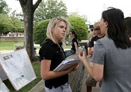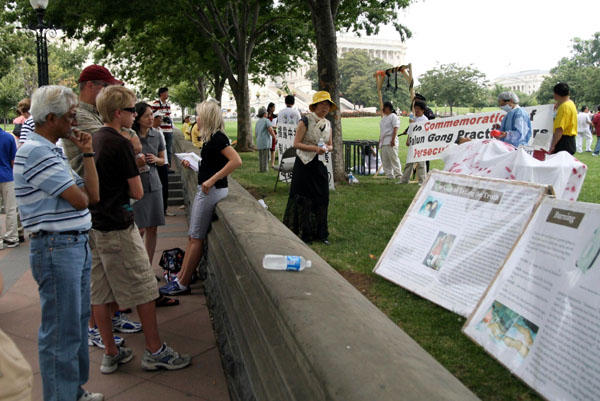 国会山庄是华府旅游重点,每天有大量游客到此观光。当天的集会及反酷刑展吸引游人驻足观看,了解真相。 |