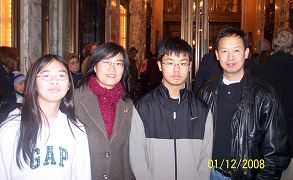 | 【明慧网二零零八年一月十五日】(明慧记者波士顿采访报道)“神韵巡回艺术团”在美国波士顿连续上演了四场新唐人全球华人新年晚会,受到观众热烈欢迎。 Sally和朋友Palmer一月十一日来到波士顿歌剧院,观赏“神韵巡回艺术团”演出。她们说: “晚会中的演员太美了,他(她)们具备很美妙的舞蹈艺术。” “我喜欢那个女孩有长长的白袖的舞蹈(雪山白莲),很流畅,很优美。” 一月十二日下午,“神韵巡回艺术团”演出新唐人全球华人新年晚会最后一场。剧院观众满座,观众对每一个节目都报以热烈的掌声。 Jacqueline来自法国,退休后在波士顿工作。她的朋友Florence来自法国,从事软件工程。她们说演出太棒了,服装非常美,舞蹈美妙极了。她们很惊奇的看到节目中有关于法轮功的舞蹈,因为法轮功正在中国遭受迫害,表现这样的事情是需要非凡勇气的。她们还关切的询问:“西藏人遭受的迫害怎么样?(中共)政府对演出有何感受?” 波士顿的Chris 和Catherine说:“演出非常精彩。我很高兴有机会观看演出。我们喜欢那些舞蹈。在中文学习中,我们稍微了解一些在中国发生的迫害的情况。我们学校有一位来自中国的中文教师。我们经常与她交谈了解那里正在发生的事情。我认为我们国家(美国)的人对中国正在发生的事情了解的很少很少。”   波士顿华人厨师阿强一家 |