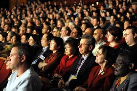 【明慧网二零零八年一月十六日】(明慧记者叶灵辉蒙特利尔报导)新唐人全球华人新年晚会二零零八年一月十五日在蒙特利尔梅桑纳芙剧场(Maisonneuve Theatre)上演,给致力于发展多元文化的蒙城带来了一股中国文化热。近百位蒙城各界名流到场祝贺。  加拿大蒙特利尔的观众们聚精会神的观赏“神韵巡回艺术团”的演出 |