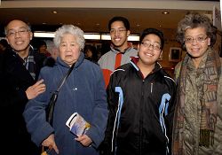 | 【明慧网二零零八年一月二十一日】(明慧记者多伦多采访报导)“神韵巡回艺术团”在加拿大多伦多上演的二零零八年新唐人全球华人新年晚会,引起轰动,吸引和感动了大批东、西方观众。 一月二十日下午看过晚会后,MARK LYN先生夫妇、母亲和两个儿子全家五口都表示喜欢这个晚会。凌先生告诉记者,他和儿子正在学写中文。凌太太说,她最喜欢那个表现水的非常美的节目,还有男演员表演骑马的舞蹈——《草原牧歌》。两个儿子都表示赞同母亲的意见,并兴奋的模仿男演员的舞蹈动作。 凌氏夫妇表示能感受到晚会所传达的信息:信神敬佛。凌先生已经知道法轮功学员在中国遭受的迫害,他说:“节目内容好象与政治有关,但我可以接受,因为我知道他的背景,而且那些信息都是公开的,一点不影响我喜欢这个晚会。”  看过晚会后,凌先生全家都表示喜欢这个晚会。