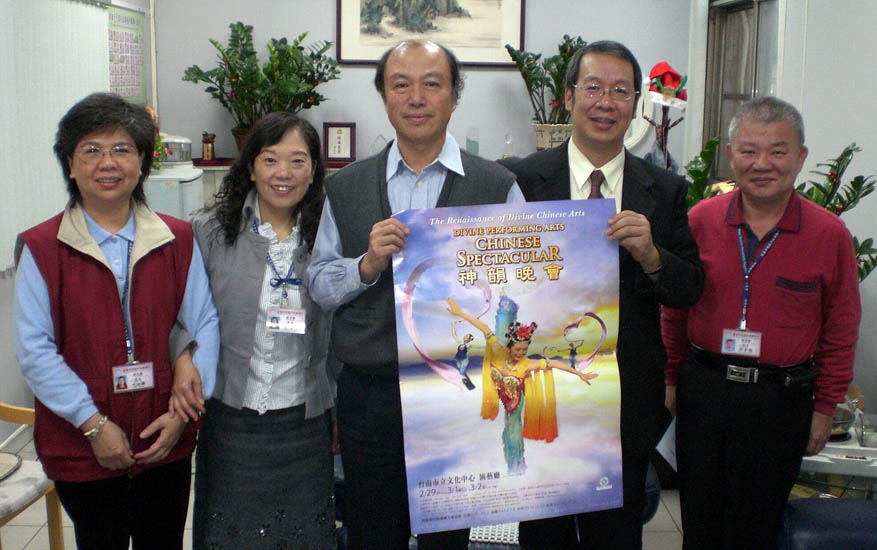 【明慧网二零零八年一月二十二日】“神韵纽约艺术团”即将在二零零八年二月二十九日至三月十八日到台湾演出,节目旨在开创及找回正统的人类文化,以纯善纯美的歌舞艺术展现神传文化的精髓。  嘉义市西区户政事务所陈建良主任(中)暨同仁喜闻神韵 |