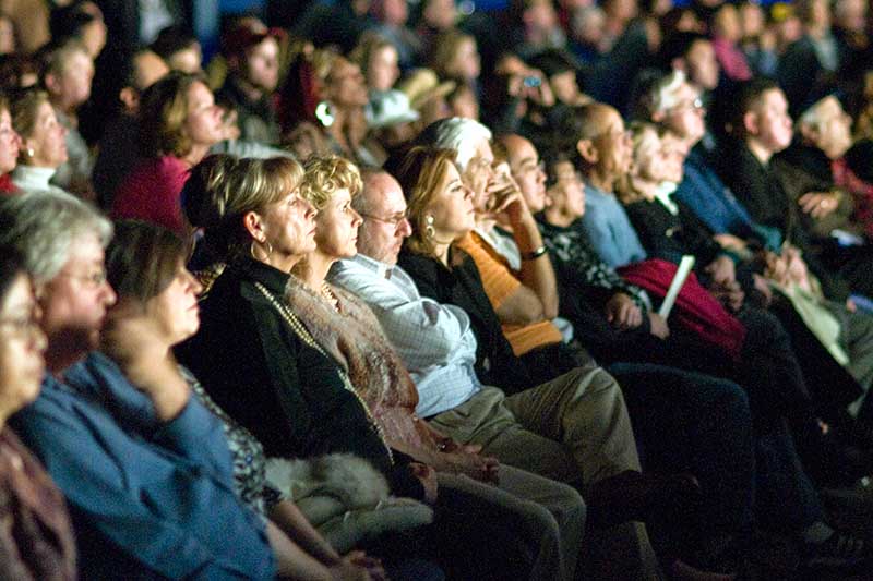 【明慧网二零零八年一月二十二日】(明慧记者黄凯莉拉斯维加斯报导)随着音乐响起,当大幕一拉开,舞台上仙雾袅袅,演前呈现出仙国的景象,全场观众立即掌声雷动,这是二零零八年一月二十一日晚,神韵纽约艺术团正在世界娱乐之都——拉斯维加斯著名的希尔顿酒店(Hilton Hotel)上演全球华人新年晚会。之后,观众掌声一浪接一浪;并有观众高呼:“好!”晚会结束时观众们都起来鼓掌。 拉斯维加斯观众聚精会神观看演出。 |