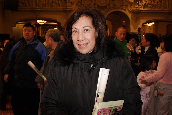 | 【明慧网二零零八年一月二十七日】(明慧记者王英旧金山报导)一月二十六日,神韵纽约艺术团在旧金山进行了七场中的最后二场华人新年晚会的演出。晚会再次吸引了当地及附近地区的各族裔、各行业人士。 刚从上海来美不久做信息技术行业的赵女士带着朋友一起来看演出。她说:“这个新年晚会很独特,与在中国大陆看的不同。在这里能看到弘扬中国传统文化的节目,非常高兴。” 赵女士说:“我最喜欢弘扬真善忍的歌曲。中国大陆封锁消息封锁的很严。所以,很多东西你根本就没有办法了解到,一些网站根本访问不了,所以很多大陆人还是不太了解对法轮功的迫害。” 赵女士说:“我在国内听不到法轮功被迫害的消息,到美国后,在网上看到了很多中共迫害法轮功的消息。现在看了这场晚会,我很感动。在国内看到的,跟在这边看到的完全不一样。” 赵女士说:“弘扬传统文化,对任何人都是有百利而无害的。” 大陆孟先生:神韵艺术团一定在中国也会演出 在高科技公司工作的孟先生看了演出后,非常感动。他说:“我特别感动,特别是当人民团结起来以后,把共产党的警察赶走的时候,非常感动。所以我相信,有一天,我们神韵艺术团一定在中国也会演出。我最感动的节目是恶警被赶走的节目。” 另一个大陆人司徒表示,节目很精彩,很好看。法轮大法真好。我哪个节目都喜欢。 投资顾问:整个世界都应该听到晚会传达的信息  投资顾问Sandy说:整个世界都应该听到晚会传达的信息