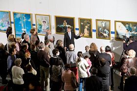 开幕式结束后很多人留下来,再一次仔细欣赏画作。 |