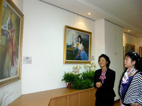 【明慧网二零零八年十一月十八日】台湾台北士林公民会馆「真善忍国际美术巡回展览」展出以来,参观人潮不断,从事幼稚教育的郑以甄园长认为,画展吸引人是因为画作中看到画家的真情流露,自己不自觉的会和画中人物产生情感的共鸣,这些画家实在太棒,太棒了! 从事幼稚教育的郑以甄园长(右)赞叹,画作虽然是静态,给人的感觉却是活的,有生命。