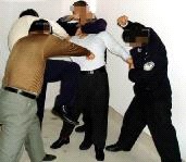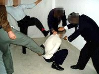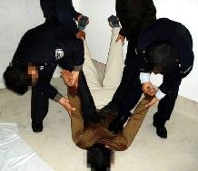 2002年6月份,张祥富被方正县国保大队队长丑永生及天门派出所恶警又一次绑架,在方正县第二看守所非法关押三个月后非法劳教三年。被非法关押在哈尔滨长林子劳教所。在哈尔滨长林子劳教所遭受20多种酷刑,被按在地上进行“推、掰、撅”折磨,肩部、腿部等关节都“推”伤,内脏受到挤压受伤,当时张祥富被折磨得非常痛苦,肋骨被打折七根,头骨塌陷一处,手背被烧焦。劳教所不法人员把针安上把儿,拿大法弟子当靶子,象扔飞镖一样把针往人身上射。张祥富被迫害的奄奄一息,于2005年10月15日含冤离世。 二、方正县公安分局对大法弟子于连和的迫害 99年7月于连和因不放弃信仰被绑架到方正县看守所。在看守所受到如下迫害:  酷刑演示图 |