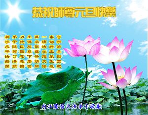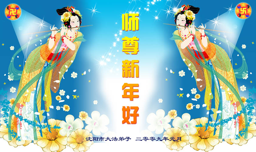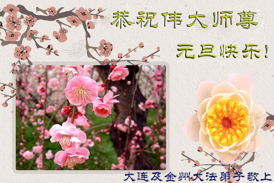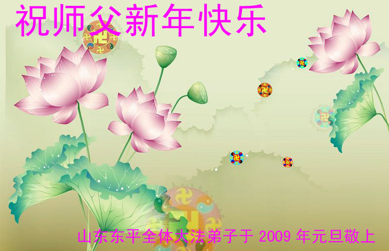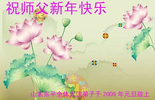 【明慧网二零零八年十二月三十一日】大连及金州大法弟子恭祝伟大师尊元旦快乐!大连及金州大法弟子敬上 二零零九年元旦 山东东平全体大法弟子祝师父新年快乐!