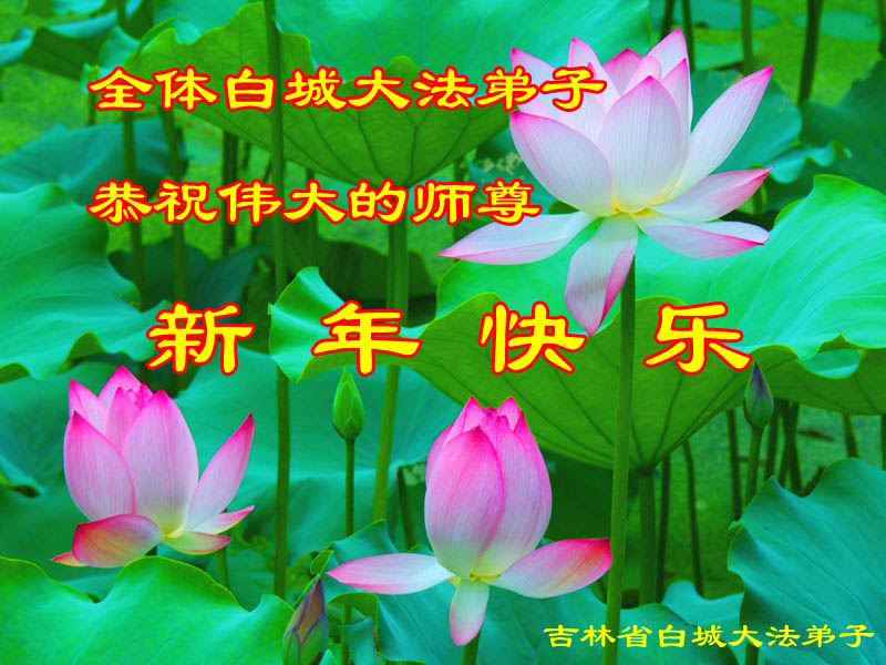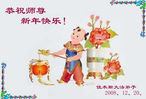 四川省内江隆昌给师父的元旦贺卡全体白城大法弟子恭祝伟大的师尊新年快乐!全体白城大法弟子恭祝伟大的师尊新年快乐!在过去的一年里,我们还有许多做得不好的地方。请师父放心,在这救度众生的最后有限的时间里,我们会努力做到以法为师,修去自己的一切人心,救度众生与更多的世人! 佳木斯大法弟子恭祝师尊新年快乐!法轮大法正苍穹,弟子学法又炼功。 一思一念在法中,助师正法神路通。 救度世人出迷中,共产邪灵要清空。 弟子越来越精進,开创未来快成功。 佳木斯大法弟子 2008年12月20日 佳木斯大法弟子向师父问候新年好!沈阳市大法弟子恭祝师尊新年好!