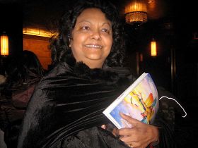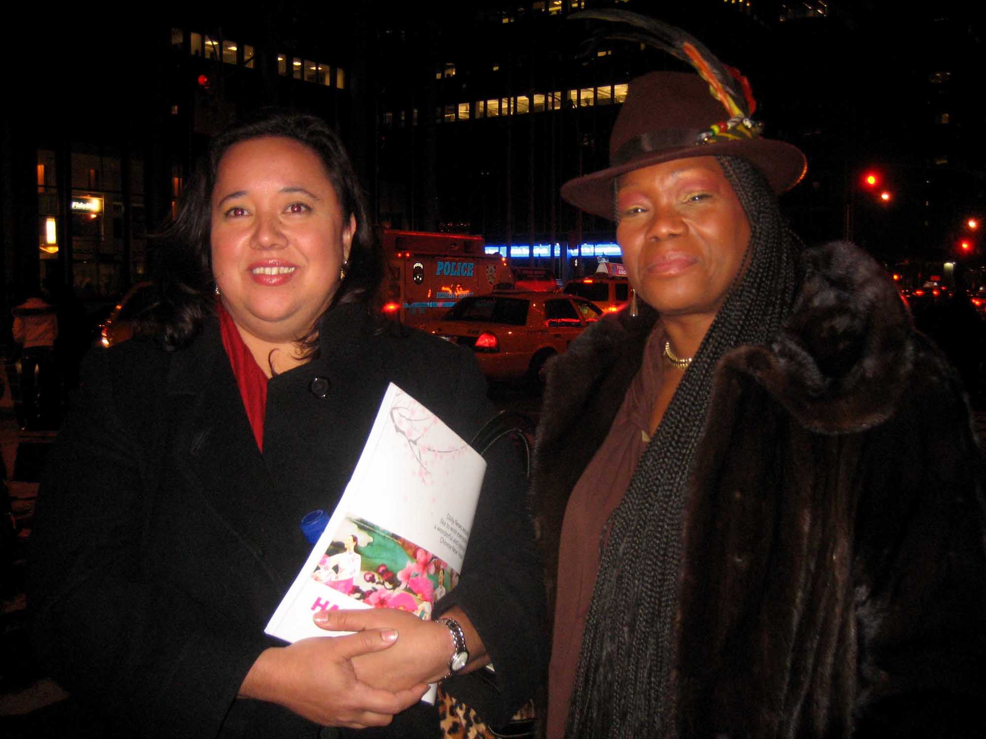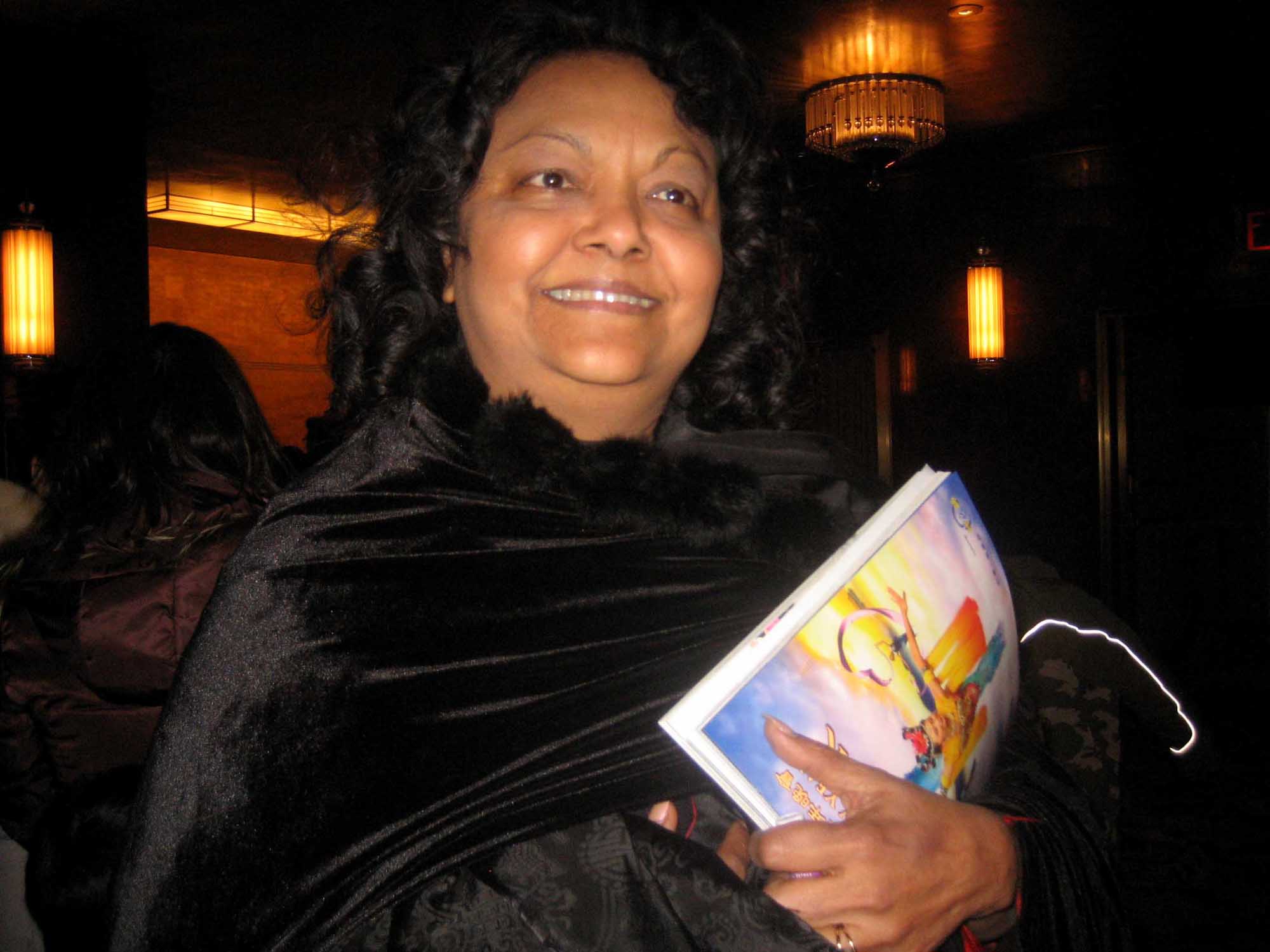 阿米娜的丈夫在旁边说,象这样发扬中华文化的表演应该让更多的中国人看到;他希望神韵艺术团的巡演也能到他的家乡--香港演出。  布鲁克林退休教师莘波若拉(Simpo rora)(右) |