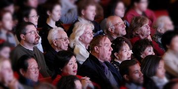 【明慧网二零零八年二月一日】(明慧记者舒静纽约报导)由神韵艺术团演出的全球华人新年晚会主场于二零零八年一月三十一日,在纽约音乐城音乐厅(Radio City Music Hall)上演第二场。观众对壮丽的天幕、精湛的表演赞不绝口,对中国神传文化的内涵而震撼。 观众聚精会神观看演出 |