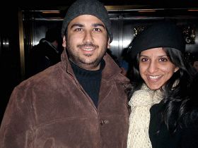 年约八、九岁的女儿阿波格尔赞同妈妈的看法,而刚刚四岁的小女儿安德瑞则认认真正的强调:“我喜欢这个演出,我喜欢那些画面;我长大了也要上台跳舞。” 老观众:“我明年还来看这个演出” 迈克儿在晚会中一直入神观看表演;这位西方绅士是新唐人全球华人新年晚会的老观众。“我这是第三年观看新唐人全球华人新年晚会了。整个演出非常好,很多内容都是新创作的。” 迈克儿还说:“演出非常专业,可以看出演员们经过了刻苦的训练,付出了巨大的努力。演出中表现的法轮功受迫害的情况,我也有所了解,因为近年来纽约街头经常有(制止中共迫害法轮功的)抗议活动。我明年还来看这个演出。”  来自印度的卡希嗒哈德和法拉 |