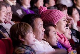 二月十七日,神韵艺术团在名古屋的名铁音乐厅演出,观众聚精会神观看。 |