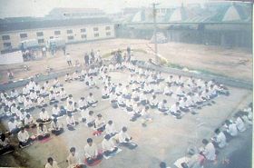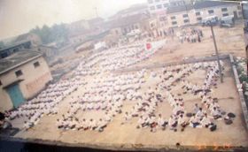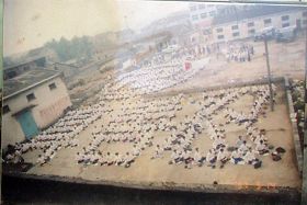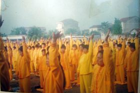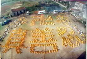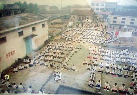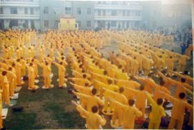 一九九八年五月三日(皇历四月初八),武汉市新洲区约千名大法弟子在新洲区周铺镇中心中学炼功弘法,庆祝师尊生日快乐! |