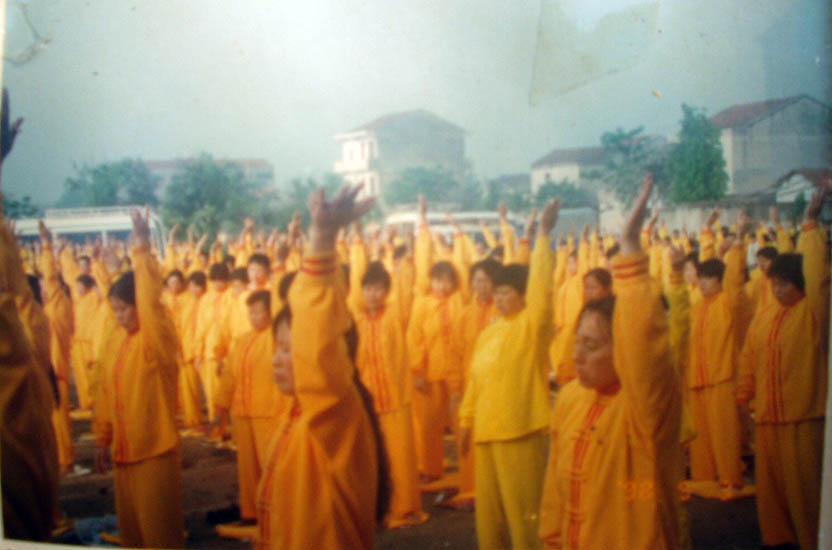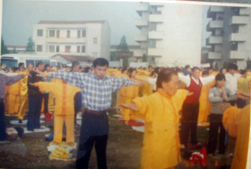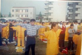 一九九七年五月十四日(皇历四月初八),武汉市新洲区大法弟子在新洲区仓埠粮店炼功弘法,庆祝师父生日快乐! |
