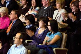 【明慧网二零零八年二月二十三日】(明慧记者雪瑞伦敦报导)二零零八年二月二十二日晚,神韵巡回艺术团在伦敦英国皇家节日音乐厅(The Royal Festival Hall)拉开首场演出的序幕。当晚许多华人观众都对晚会赞叹不已,并表示感到自豪。  神韵晚会伦敦首演的观众 |