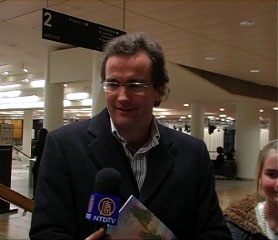| 【明慧网二零零八年二月二十六日】(明慧记者雪瑞伦敦报道)二零零八年二月二十二日至二十四日,神韵巡回艺术团在世界一流表演场地——英国皇家节日音乐厅连续演出了四场神韵晚会。英伦观众对神韵反响热烈,四场演出连续爆满,可谓一票难求,更有十多位观众在周日最后一场演出时,在大厅排队等候是否有退票,好一睹神韵风采。三天里,观看神韵的观众中有来自英国不同行业的人士,虽然背景不同,但对神韵却相同的都是一个“赞”字。记者在这里简要汇集几则观众采访,供读者一阅。 国会议员:演出迷人,希望对中国和中国文化有更多了解。 国会议员尼克•赫德(Nick Hurd MP)带着一对双胞胎女儿观看了神韵演出。在接受新唐人电视台采访时,尼克•赫德议员说,“我们认为这场演出非常好(fantastic)。这是我们第一次看中国传统舞蹈表演,演出迷人(fascinating),形式、动作、色彩,都十分美丽。我希望以后对中国和中国文化有更多的了解。”赫德议员的两个可爱的十一岁双胞胎女儿也表示喜欢看神韵。  国会议员尼克•赫德认为演出迷人(fascinating),形式、动作、色彩,都十分美丽。他希望以后对中国和中国文化有更多了解。 |