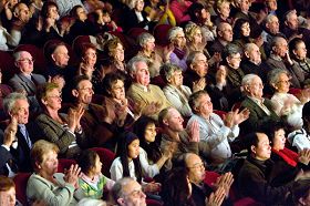 | 【明慧网二零零八年二月二十九日】(明慧记者雪伦综合报导)二零零八年二月二十六至二十七日,神韵巡回艺术团在比利时第二大城市安特卫普的城市剧院连续三场的演出圆满落下帷幕。演出获得巨大成功,观众喜爱神韵回响热烈,在最后一场的演出结束观众几乎全体起来,向演员挥手致意,大幕因观众热烈的掌声而三次打开让演员谢幕。 观众中有不少来自中国大陆的华人,对于再现真正中华传统文化的神韵,华人比西方人感慨更深。   晚会现场观众 |