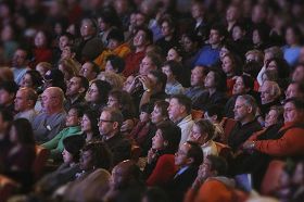 观众们聚精凝神观看二月二日下午在纽约无线电城音乐厅演出 |
