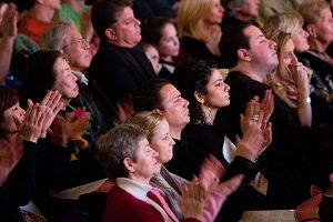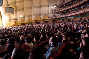 【明慧网二零零八年二月三日】(明慧记者黄凯莉纽约报导)二零零八年二月一日,全球华人新年晚会在纽约无线电城音乐厅上演两场,不少艺术家和音乐爱好者观看晚会后,对晚会的服装、音乐、舞蹈,和歌唱家都赞不绝口。 纽约观众聚精会神观看演出 |