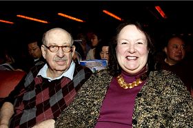 声乐教师:歌唱家们都非常杰出 英格丽特•泽尔丁(Ingrid Zeldin)是曼哈顿音乐学校院的声乐教师,她与朋友鲍勃.考夫曼(Bob Kaufman)一同前来观看晚会。中场休息时,他们表示,非常喜欢这台晚会,每一个节目都是那么美,那么好看,简直超出了想象。  声乐教师英格丽特•泽尔丁(右) |