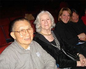 50年前从香港来到美国的唐先生(左一)于二月二日下午观看了新唐人全球华人新年晚会。他说,“今天是我五十年来第一次看中国晚会。” |