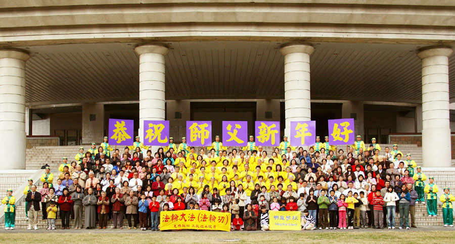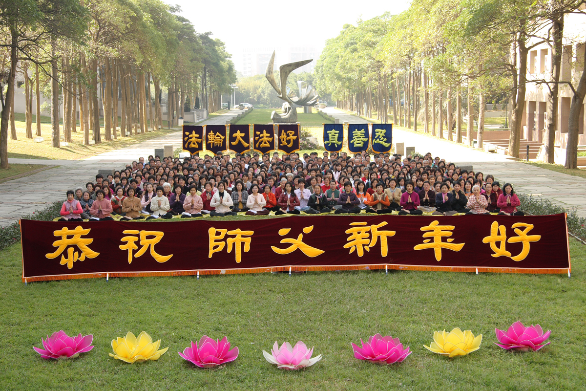 二零零八年一月二十日,台湾桃竹苗法轮功学员齐聚新竹交通大学,藉由集体学法交流共勉精進,更于难得风和日丽的一天,以最诚敬的心向伟大的师父问候新年好。  桃竹苗全体大法弟子恭祝师尊新年好 |