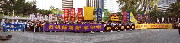 二零零八年二月三日,台北县市的法轮功学员在中和四号公园共同祝愿法轮功创始人李洪志师父新年快乐!  台北全体大法弟子向伟大的师尊恭祝师尊新年好 |