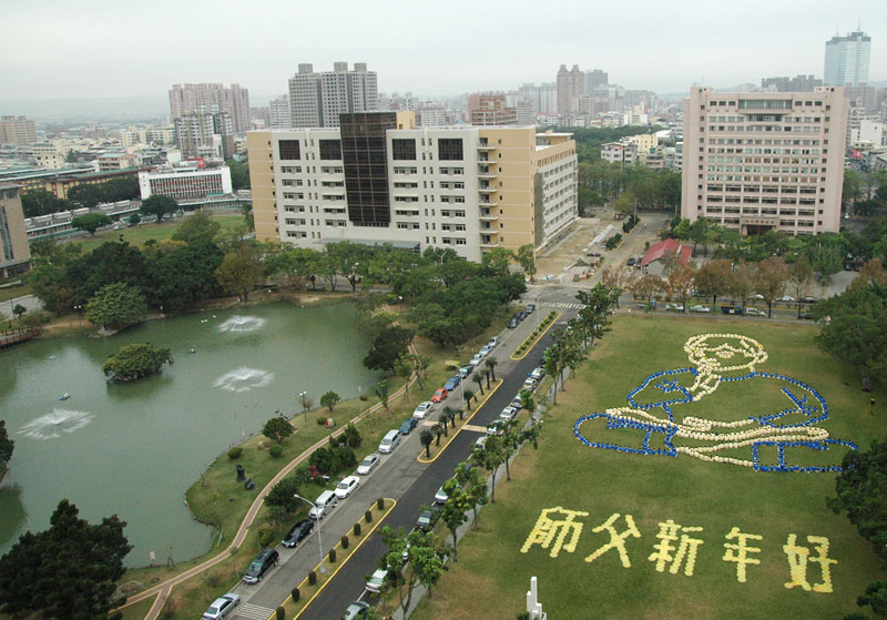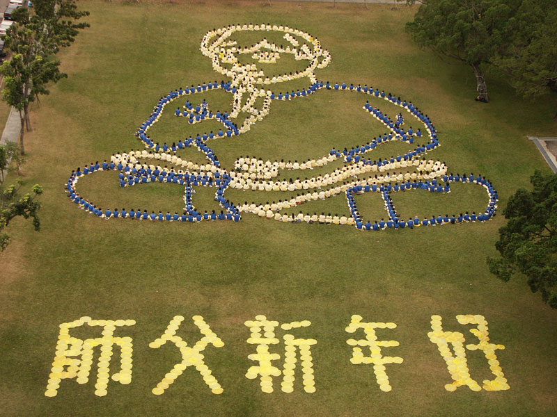 台中大法弟子集聚中兴大学中兴湖旁排字炼功,恭祝师尊新年好 |