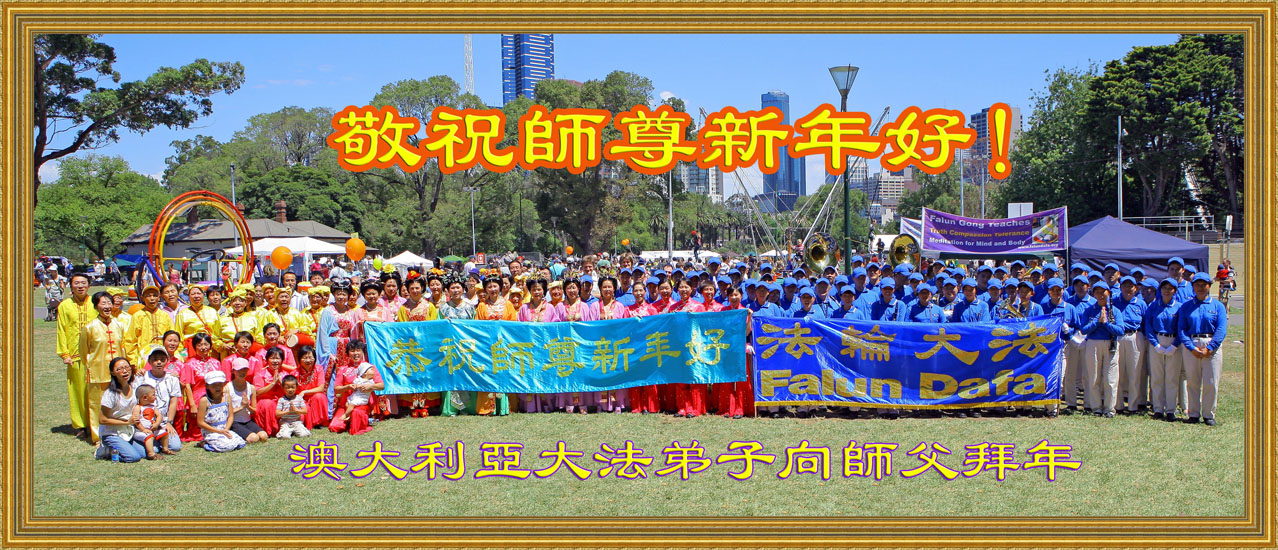 墨尔本全体大法弟子在此祝慈悲伟大的师尊新年快乐!