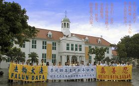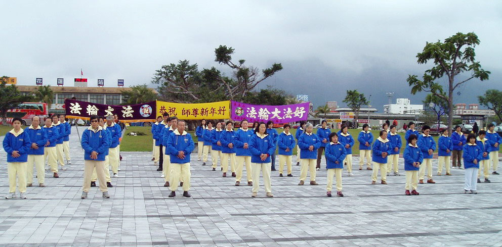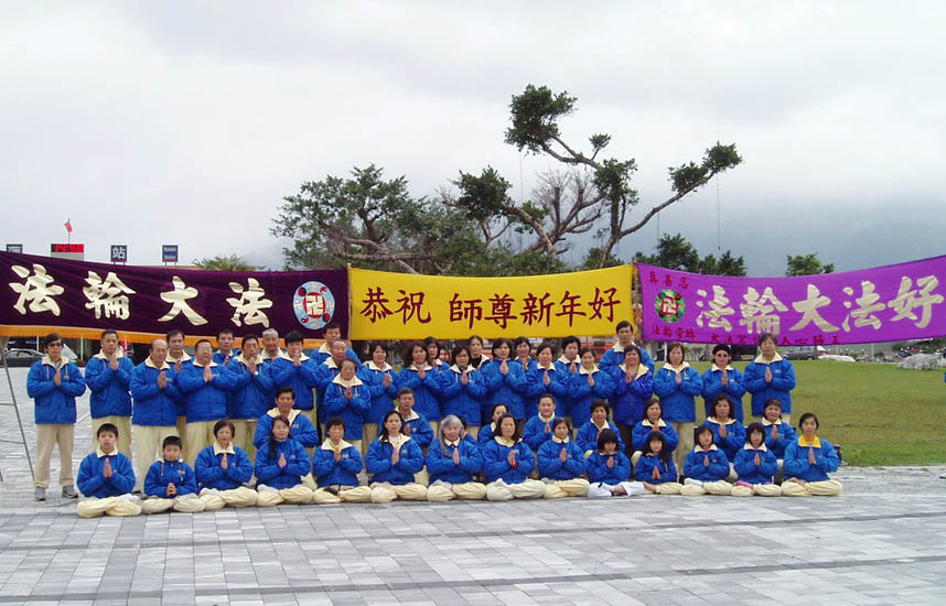 观看录像(2MB)二零零八年二月三日,台湾花莲法轮功学员以最诚挚的心恭祝师尊新年好。学员们谨记师尊的谆谆教诲,集体学法,一起学习《精進要旨》,交流修炼心得和讲清真相中的体悟,学员谈到在修炼中再去掉人的观念,如何扩大心的容量,加大力度、抓紧时间讲清真相。 许多学员在大法修炼中身心受益,由衷感谢师尊的教导。下午在花莲火车站前集体炼功,向世人展示大法的祥和美好。最后大家一起合影,以诚挚的心恭祝慈悲伟大的师尊新年好。 台湾宜兰学员向师父拜年(图)