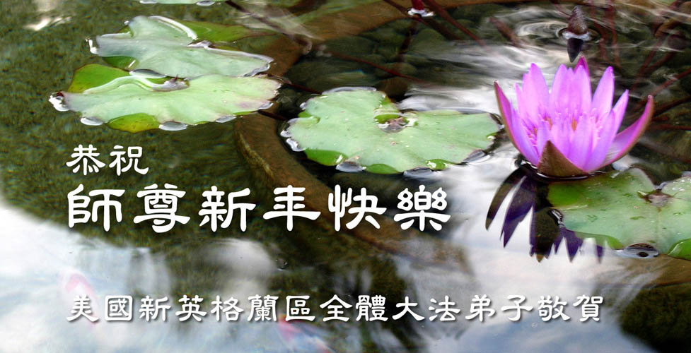 二零零八年二月三日,中国新年(岁次戊子)来临前,来自台湾宜兰县各乡镇的法轮功学员举办集体学法交流活动。值此象征除旧布新的岁末,学员们一起学习师父的新经文,琅琅有韵的读书声,让周遭显得格外祥和温馨,并分享了近期修炼体会,总结过往修炼中的不足,以惕励来年更精進。 新年将届,在这万物更新的时刻,宜兰学员格外感念师父的谆谆教诲。大家学法后,齐聚罗东运动公园合影恭祝师父新年好,表达内心最真挚的祝愿。 美国新英格兰大法弟子敬祝师尊新年好!