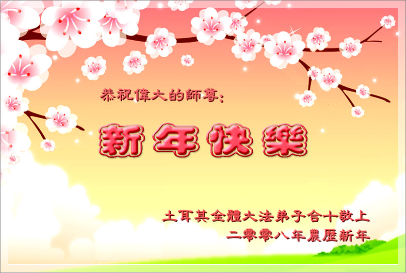 值此辞旧迎新之际,我们土耳其全体大法弟子向慈悲伟大的师尊拜年!恭祝师尊新年快乐! 我们一定不辜负您的慈悲苦度,珍惜这万古机缘,抓紧时间做好三件事,踏踏实实、理智清醒的走正走好最后的正法路程。 土耳其全体大法弟子合十敬上 丁亥年腊月二十九 澳门大法弟子恭祝慈悲伟大的师尊新年快乐!