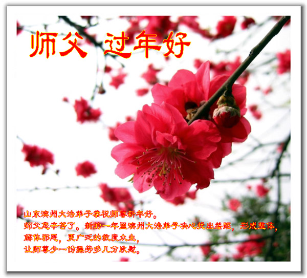 师父过年好!弟子们给师尊拜年了! 日本全体大法弟子一定做好师尊要求的三件事,在有限的时间内,抓紧救度更多的众生。 台湾台东大法弟子恭贺师尊新年好