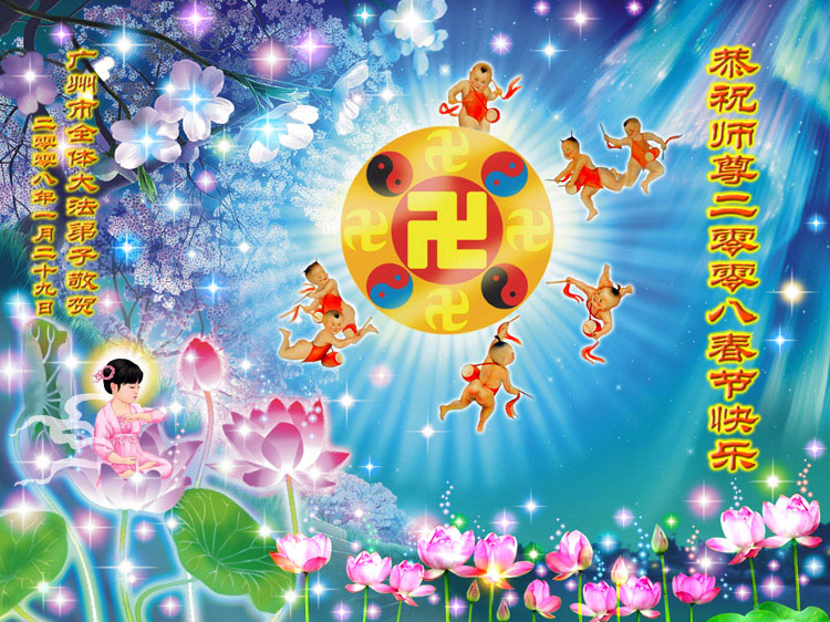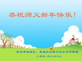 师父过年好。我们在新的一年里将更好的完成救度众生的使命,做好三件事,精進实修,跟上正法進程。 全体太谷县大法弟子2008.2.3 佛山大法弟子一家人祝师尊新年快乐!