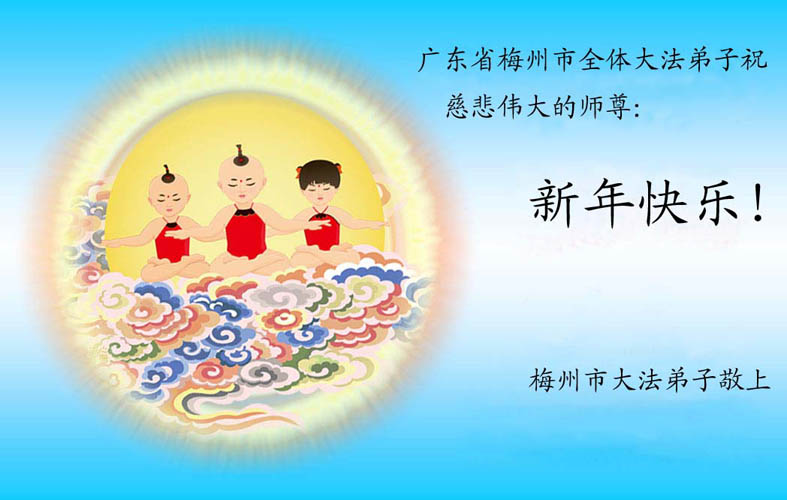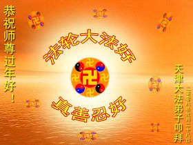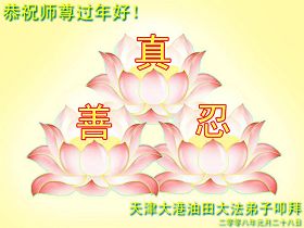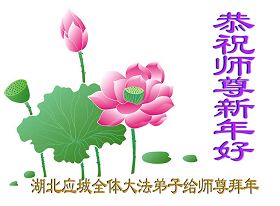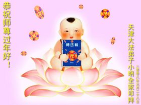 风风雨雨中又走过一年,师尊的恩情似海深。我们会全力广传真相,救度更多的世人。当神州真的阴霾除尽的时候,我们在春天恭迎师尊。 借明慧一角,谨代表河北献县所有被非法关押迫害的同修及其他尽力做三件事的同修向慈悲伟大的师尊拜年!恭祝师尊新年快乐,师尊的家人新年快乐!借这个机会祝海外所有的大法弟子你们新年快乐!你们辛苦了,我们同师同法,虽然我们的环境不同,可是我们的心是相通的。 大陆大法弟子 大陆大法弟子一家三口向师父拜年