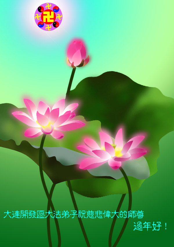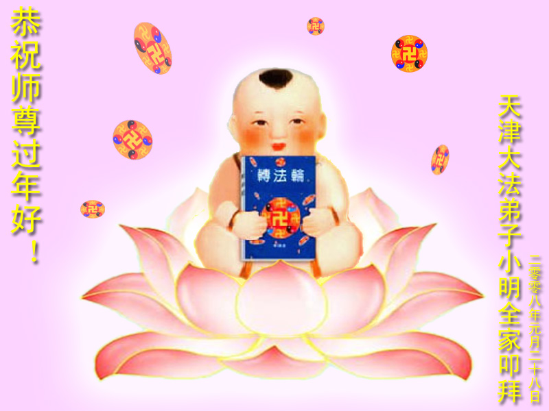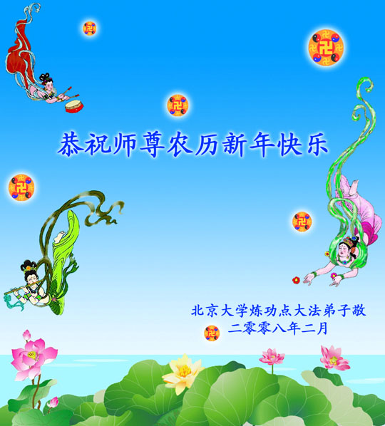 师尊您辛苦了!弟子们想念您啊! 我们会走好这最后的正法之路,抓紧时间救人,圆满随师还! 哈尔滨南岗区大法弟子跪拜师尊 二零零八年二月一日 大连开发区大法弟子恭祝慈悲伟大的师尊新年快乐!