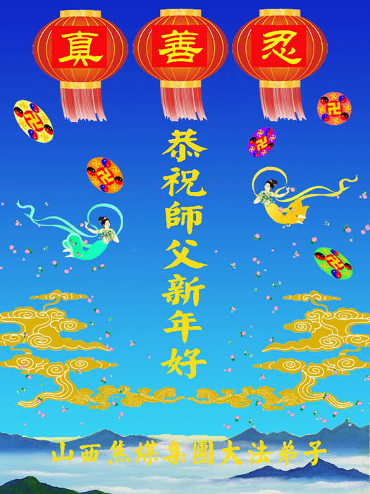 恭祝师尊新年愉快!弟子想念师尊。 在新的一年里: 弟子一定以法为师,修心向内找,做好三件事。 弟子信师信法,遇事向内找,做好三件事请师尊放心。 弟子请师尊放心,我一定会做好,跟师尊回家。 弟子一定放下自我,无条件同化大法,做好三件事,走好、走正师父安排的路。 愿师父多一些欣慰,少一些操劳。 中国大陆新闻系统大法弟子向慈悲伟大的师父拜年