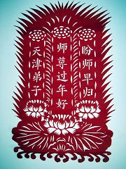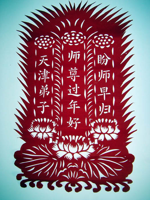 弟子心 恩师苦度有缘人 , 亿万法徒正果神。 新年佳节忆师尊, 剪纸略表弟子心。 整体配合齐精進, 慈悲多救世间人。 正念正行邪恶尽, 师徒聚中①庆新宇。 辽宁省丹东市全体大法弟子敬。 [注①:师尊回国,师徒团聚,同庆新纪元] 辽宁省安东大法弟子向伟大师尊拜年:师父过年好!