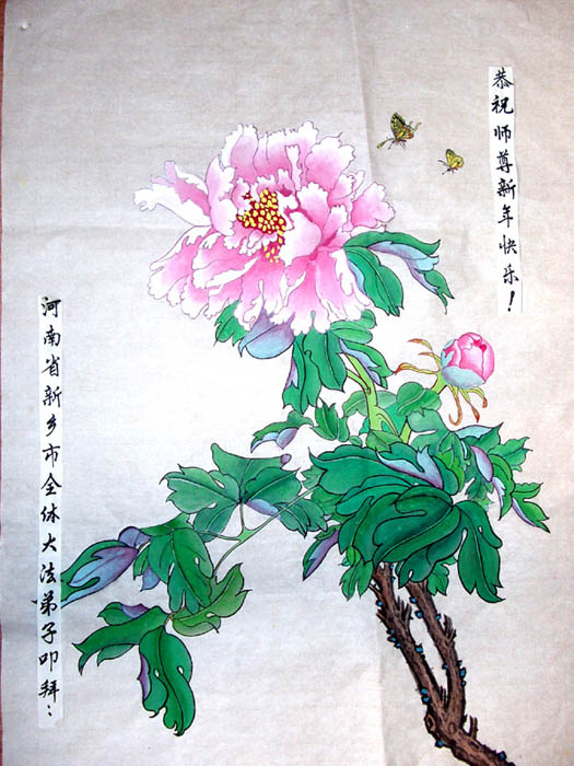 同颂主佛普度恩 红笺裁图献恩师, 安东弟子一片心。 线条含润真善忍, 图成心愿映宇穹。 只愿众生都得救, 知真善忍大法好。 同颂主佛普度恩, 返本归真真美妙。 [注:安东,丹东市旧名。中共入朝作战,血染鸭绿江,“丹东”被中共说是“红色东方之意”,有血腥,故不用。乃用旧名。] 黑龙江大法弟子恭祝师尊新年快乐