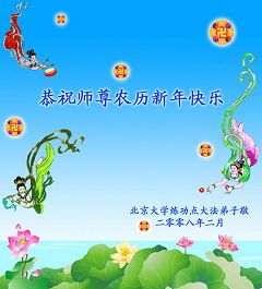 又过去一年!在新的一年里我们将继续做好该做的事,兑现史前大愿!跟师父回家! 哈尔滨市全体大法弟子敬上! 二零零八年二月二日 河北武安大法弟子向师尊问好