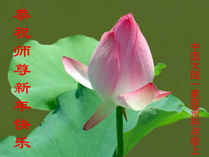 新年来临,我们更加思念远在异国他乡的尊师,我们大法弟子只有把这对师父的思念之心融入到救度众生中去,做好大法弟子该做的三件事,才能不辜负师尊的慈悲救度之恩。 四川成都莲花学法小组大法弟子祝师尊新年快乐