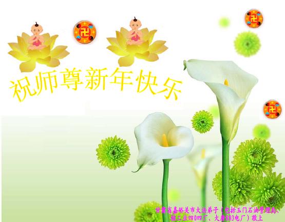 恭祝慈悲伟大的师尊新年好!我们一定做好大法弟子应做的三件事,修好自己,救度众生! 广东省恩平市全体大法弟子向慈悲伟大的师尊问好!恭祝师尊新年快乐!