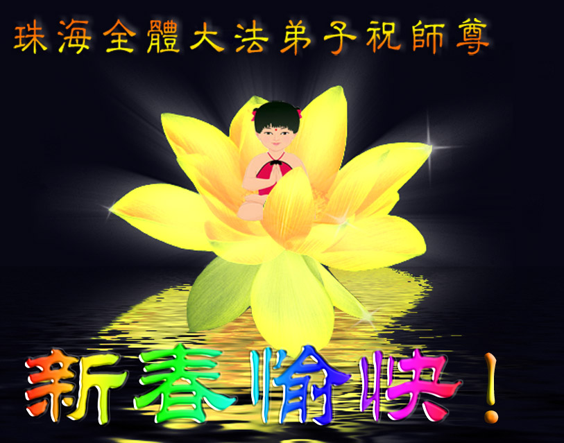 珠海大法弟子向师尊恭贺新年,恭祝师尊新年快乐!